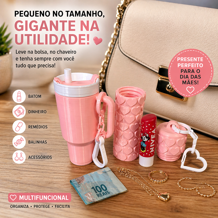O porta batom chaveiro estilo copo Stanley é o queridinho do momento! Além de lindo, é extremamente funcional e versátil - ideal para o dia a dia.