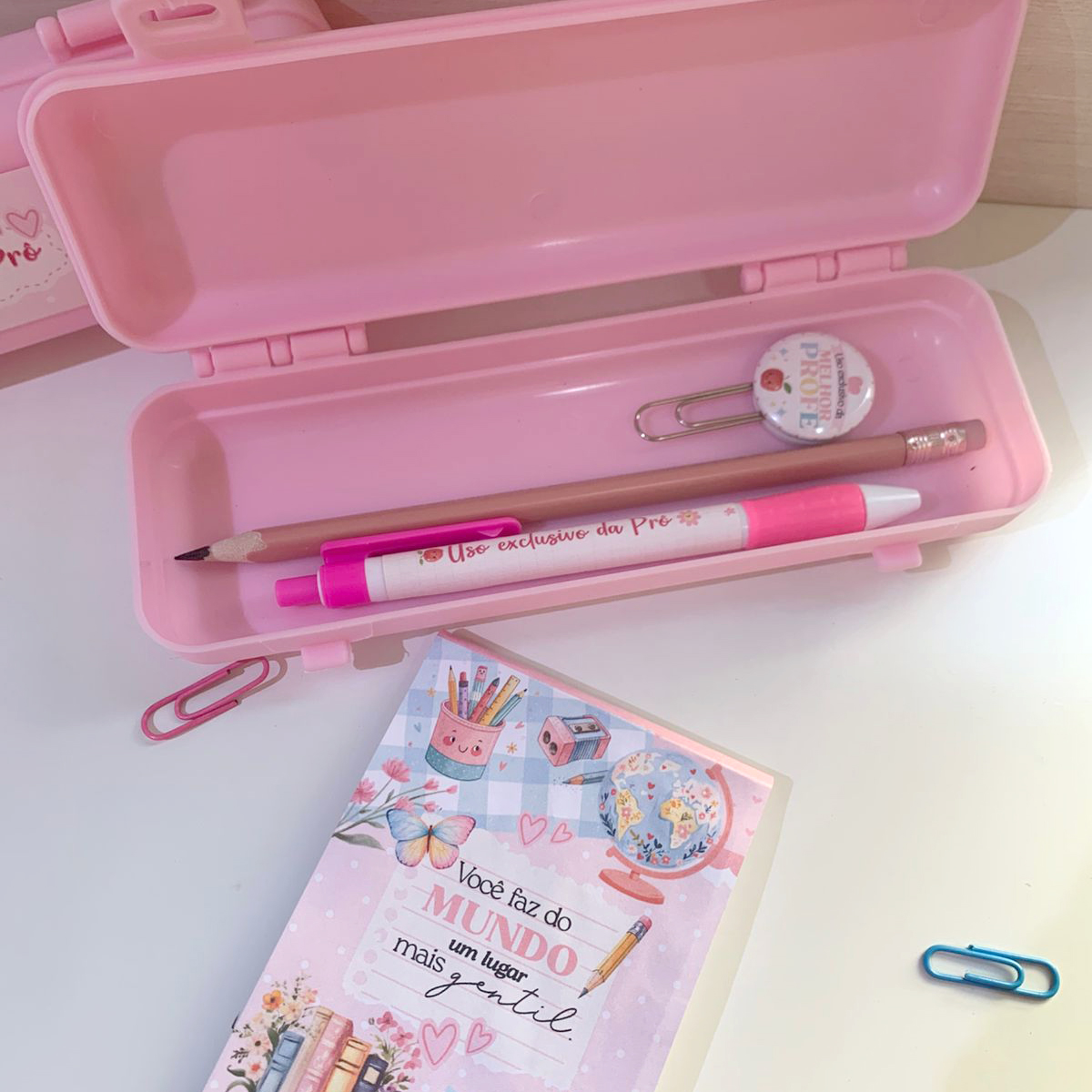 Este kit foi pensado com muito cuidado para presentear os professores de forma especial, útil e cheia de significado.